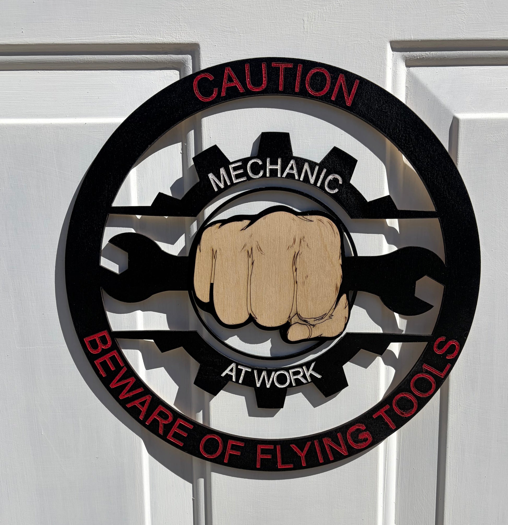 Looking for a unique gift for a mechanic or DIY enthusiast? Look no further! This 11.75 inch, 2-layer sign is made of Baltic Birch and is perfect for any shop or hobby area. But be warned, flying tools may be present - better wear a helmet!